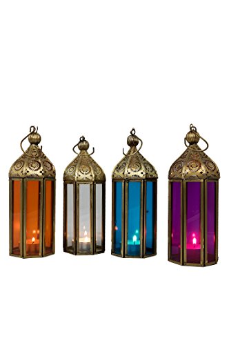 Lanterna a vento, lanterna da giardino, lanterna in ferro, orientale, marocchino, Arabo Mediterraneo, Marocco - Jayanti Blu 19cm - per le candele