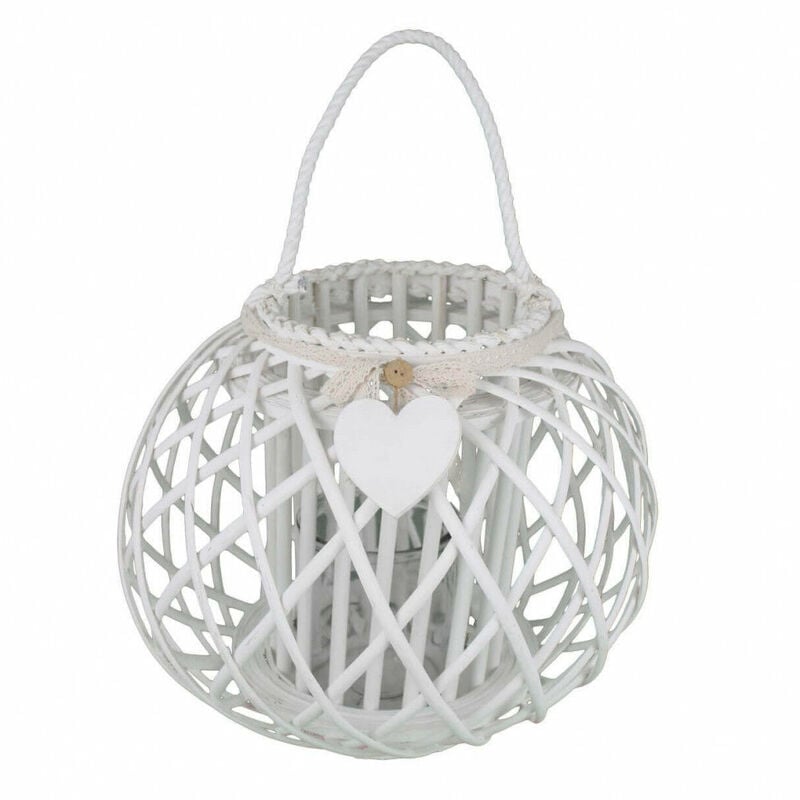 Lanterna Lanterna Yolande in Vimini Bianco Lanterna BIANCA in vimini e vetro con nastro in pizzo e decoro a cuore Dimensioni: Top Ø20x40 h cm - Centrale Ø49x40 h cm - Vetro Ø13x17 h cm Colore: Bianco