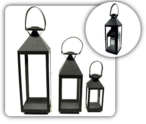 Set di lanterne in metallo, 3 pezzi, colore NERO, per interno o esterno, manico in similpelle - marchio LA VOLPE SPARAGNO'