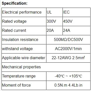 【Diametro del Filo Applicabile】 22-12 AWG 2,5 m㎡