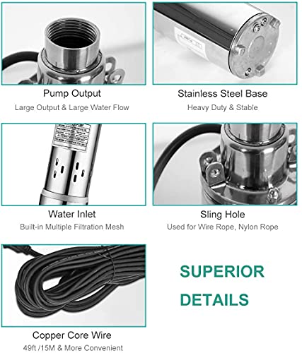AMPIA APPLICAZIONE: questa pompa per pozzi profondi può essere utilizzata per l'irrigazione di terreni agricoli, il pompaggio dell'acqua di pozzo, l'approvvigionamento idrico della torre dell'acqua, ecc