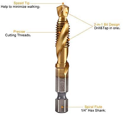 ✅ 【Alta efficienza】 Completa foratura, maschiatura, durevole e svasatura in un'unica operazione e risparmia notevolmente le fasi di elaborazione e i costi di tempo, migliora l'efficienza lavorativa Consigliato per l'uso su una maschiatrice. Prestare attenzione al metodo di funzionamento quando si utilizza il trapano elettrico. Un'eccessiva agitazione e inclinazione influirà sul tocco e persino romperà il rubinetto.