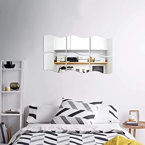 LANTRO JS Specchio Adesivo Onda 3D, 6pz 12x10cm Specchio Flessibile da Parete in Acrilico,Decorazione per Parete, Armadio, Piastrelle da Bagno