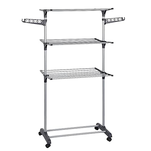 LANTUS Stendino, 3 Livelli Stendibiancheria Verticale Allungabile con Ruote, Acciaio Inossidabile Stendino da Balcone Esterno, Stendipanni per Interno (HL355942_01 (grigio))
