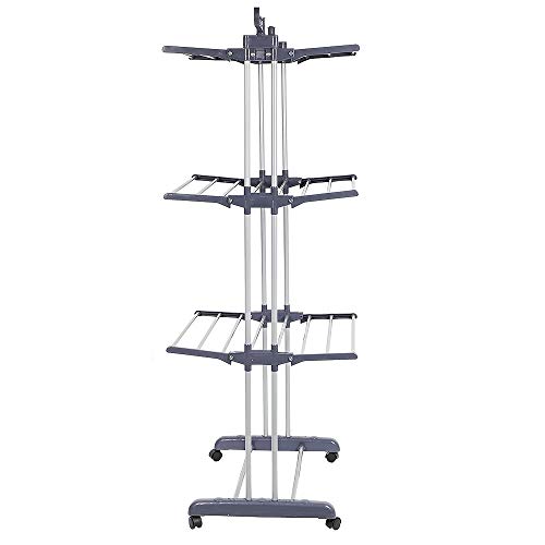 LANTUS Stendino, 3 Livelli Stendibiancheria Verticale Allungabile con Ruote, Acciaio Inossidabile Stendino da Balcone Esterno, Stendipanni per Interno ((75-126)*64*170 cm (grigio))