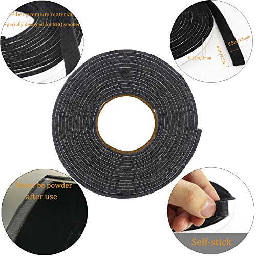 LANUCN Barbecue autoadesiva a Prova di perdite di Nomex affumicatori Guarnizione/Striscia di Tenuta del Fumo/Guarnizione griglia Resistente al Calore (8,2ft, 1/2 ", 1/8", 2 Pezzi) (Nero)