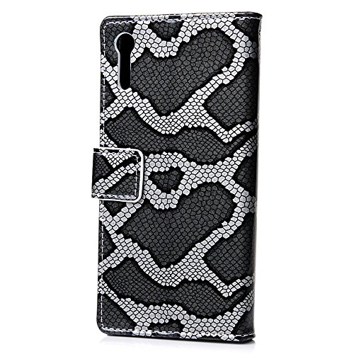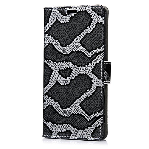 Lanveni Custodia Cover Flip PU pelle per Sony Xperia XZ Portafoglio Libro Protective Case con Chiusura Magnetica e Funzione di Supporto - Serpentina (Argento)