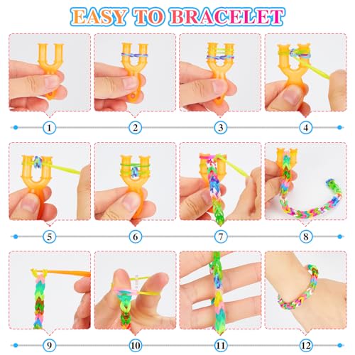 Kit per Fare Braccialetti: il elastici per braccialetti kit con gancetti può realizzare molti kit speciali fai-da-te per bambini, come braccialetti in gomma dell'amicizia, accessori per capelli, collane, anelli, ciondoli, portachiavi e altro ancora. Il processo fai-da-te esercita abilità pratiche, coltiva abilità estetiche, capacità di apprendimento e migliore pazienza.