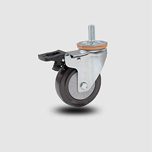 LanXin Heavy Duty Caster Ruote in Gomma Ruote con Freno M14 / 16 filettato 336 kg capacità di carico Formato: 100mm (4in) Colore: Nero (Color: with Brake, Size: M14)