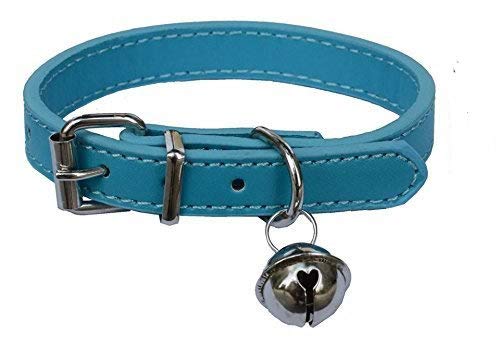 Lanyar Collari per animali domestici in pelle blu turchese per gatti cucciolo, regolabile da 20,3 a 26,7 cm con campana