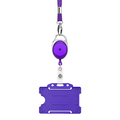 LanyardsTomorrow Trio Porta Badge e Bobina 1Pcs - Set di cordino retrattile e porta badge, confezione tripla con cordino singolo, moschettone estensibile e porta carta d'identità rigido, colore viola