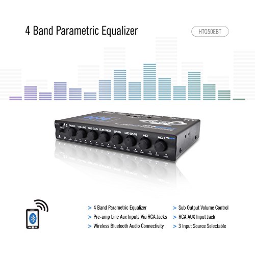 Lanzar HTG50EBT serie Heritage - Equalizzatore parametrico a 4 bande con controller Subwoofer e audio wireless Bluetooth