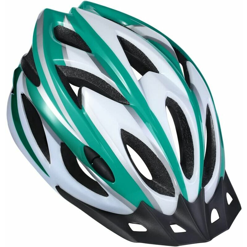 Materiale: il casco da bicicletta adotta EPS, PC e PVC ad alta densità importati. Fodera: fodera protettiva rimovibile, comoda da indossare e facile da lavare. Confortevole: con 18 prese d'aria a nido d'ape, lo speciale design aerodinamico che rende l'aria ventilata può rimanere fresca durante la guida in bicicletta. Sicurezza: la tracolla può essere regolata tra 54 e 62 cm per soddisfare le esigenze della maggior parte dei ciclisti. Leggero: la calotta del casco da bicicletta è realizzata con materiali leggeri e il cuscino interno è realizzato con materiali molto confortevoli e traspiranti. Abbinamento: una fascia da 25 x 46 cm, che può essere utilizzata come sciarpa, cappello, sciarpa, ecc., adatta per attività all'aperto come ciclismo, corsa e.