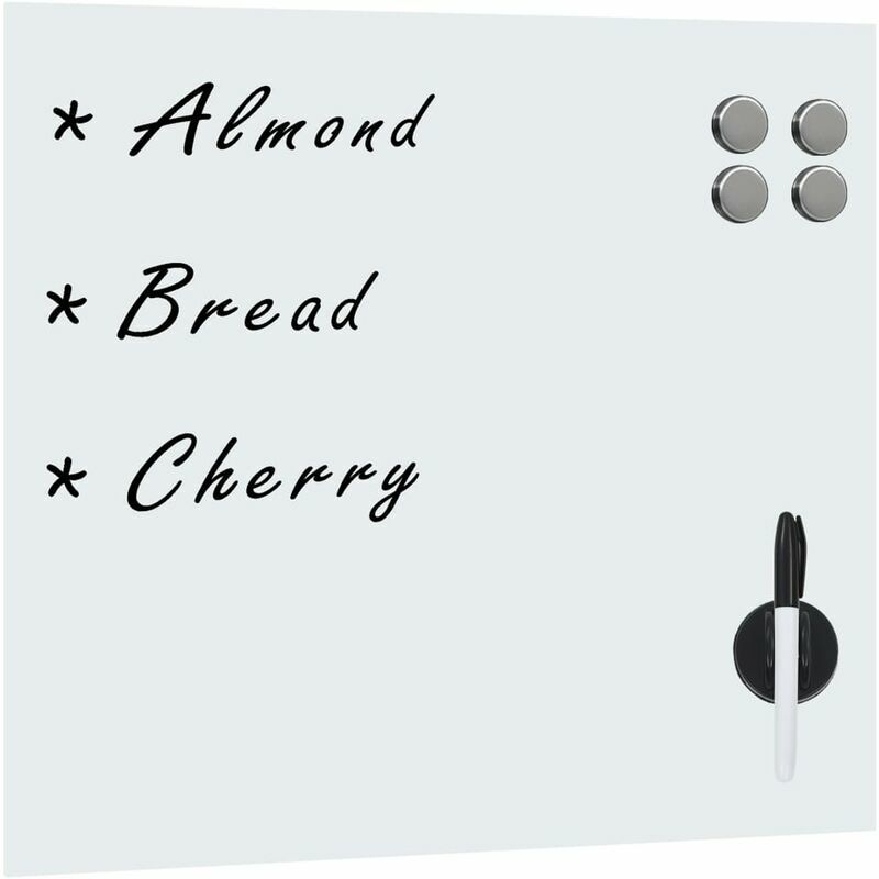 La lavagna magnetica in vetro cancellabile a secco offre tutti i vantaggi di una lavagna tradizionale in un modo più moderno ed ecologico. Il pannello di vetro è dotato di vetro temperato di sicurezza, che non si macchia, si graffia o si ammacca facilmente. Puoi attaccare fogli o appunti alla lavagna con il magnete incluso. Inoltre, puoi scrivere sulla lavagna magnetica con una penna cancellabile a secco bianca ed è facile da pulire con il tergicristallo incluso. I materiali necessari per il montaggio a parete sono inclusi, semplificando il fissaggio del pannello a qualsiasi parete della casa, dell'ufficio o della scuola. La lavagna è anche facile da montare. Colore: bianco Materiale: vetro temperato Dimensioni: 60 x 60 cm (L x A ) Spessore del pannello: 4 mm Facile da montare a parete Materiale di montaggio incluso Il 39;