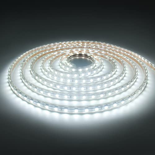 Q.Laomi Striscia LED con Interruttore, Striscia LED 220v senza Trasformatore, Impermeabile IP65 LED Striscia Adesiva Strip LED, 6M, Bianco