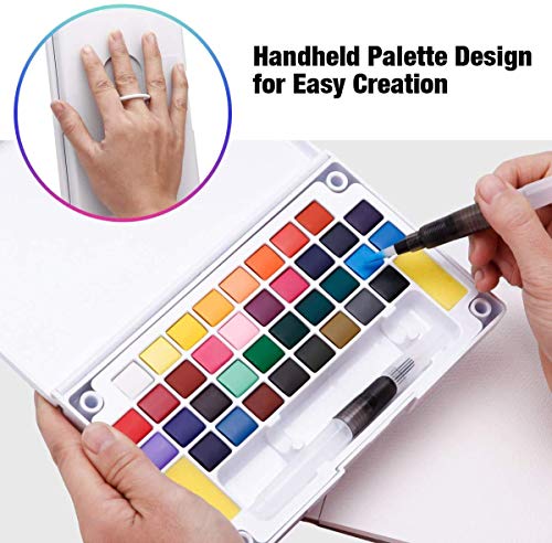 【36 colori di pigmenti concentrati】:Il nostro set acquerelli portatili ha i colori brillanti, luminosi, ricchi, durevoli.Questo set acquerelli colori non è facili da sbiadire,pertanto la sua opera d'arte può essere conservata per molto tempo.