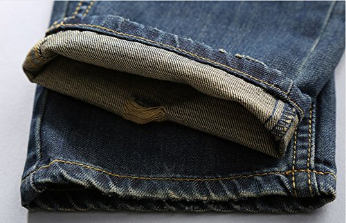 LaoZan Uomo Strappati Jeans Denim Pantaloni Slim Fit Distrutto Skinny Taglio Straigh Blu Marino 32
