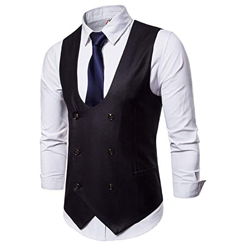 LaoZanA Uomo Doppiopetto Panciotto Gilet Giacca Senza Maniche Slim Fit Cerimonia Nero 3XL