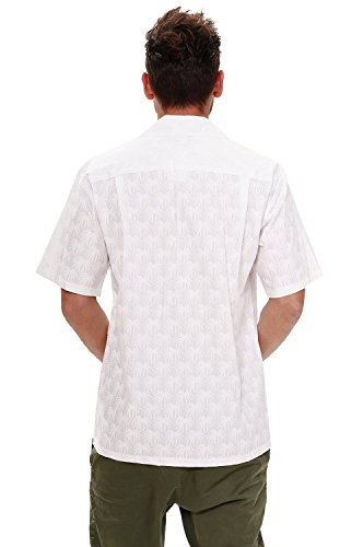 Lapa P.L.A. | Original Camicia Hawaiana | Signori | S - 4XL | Maniche Corte | Tasca Frontale | Hawaii Stampa | Palme | Pappagallo | Bianco