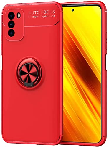 Lapinette Cover Compatibile con Xiaomi Poco M3 Anello Supporto - Cover Poco M3 Anello 360° - Custodia Poco M3 Magnetica Supporto 360° - Cover Antiurto Morbida Silicone Rosso