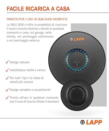 Lapp Wallbox Home PRO - Stazione di Ricarica E Auto Wallbox 11kw Tipo 2 Mode 3 per Auto elettriche e ibride, Plug & Play, Made in Germany Stazione di Ricarica per Auto elettriche