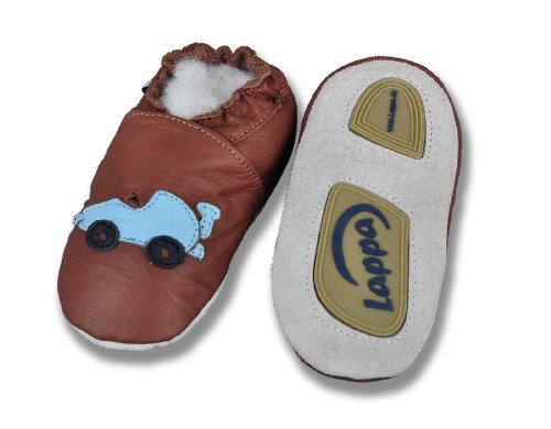 Lappa Art.85G - Scarpine in Pelle con Suola in Gomma, Decorazione: automobiline, Colore: Marrone/Blu, Marrone (Marrone), 18-20 EU/M