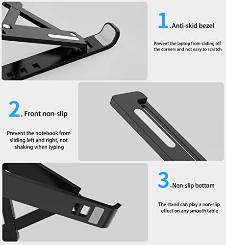 Materiale antiscivolo e durevole: il supporto per laptop è realizzato in materiale ABC e silicone. Il supporto utilizza cuscinetti antiscivolo in silicone per migliorare lattrito e prevenire lo scivolamento. La digitazione ad alta frequenza non scuote, il che può garantire la stabilità del laptop ed evitare graffi e movimenti.