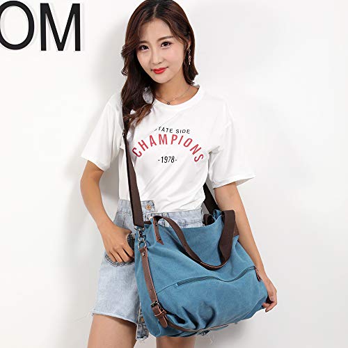 Laqiya Borsa a mano da donna, Canvas grande Totes Borse di tela per donna Borsa a tracolla Hobo Bags (blu)