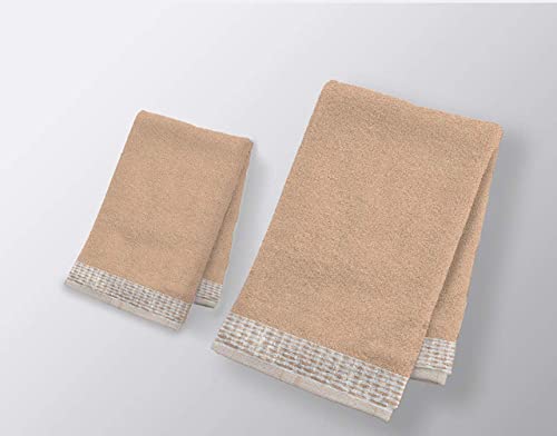 LARA MORADA Set 1+1 Asciugamani in Spugna con Balza in Jacquard Numero 1 Asciugamano Viso + Numero 1 Asciugamano OSPITE in Morbida Spugna IDROFILA di Cotone 100% (Lanvin Biscotto)