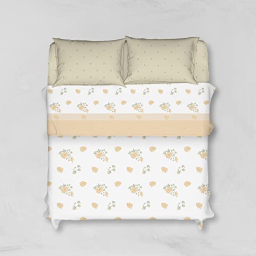 LARA MORADA Set Completo Letto Lenzuola 100% Cotone Percalle Dis Francy Giallo, 4 pezzi, Matrimoniale 2P
