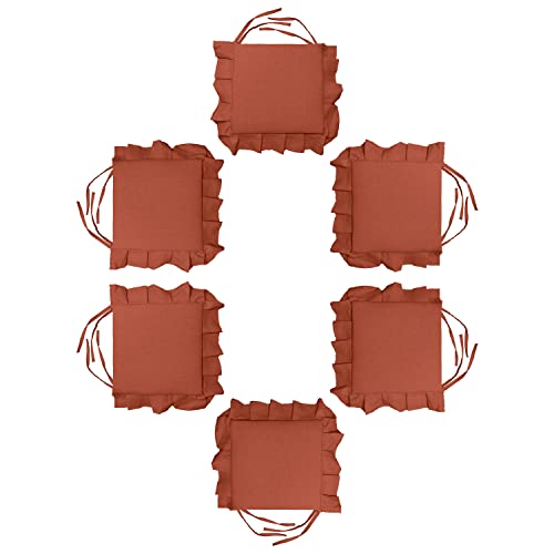 LARA MORADA - Set 6 Cuscini Copri Sedie Cucina, con Volant, Tinta Unita, SFODERABILI, con Comodo Sistema di Fissaggio con Laccetti, Made in Italy, con Morbida Imbottitura Arancio