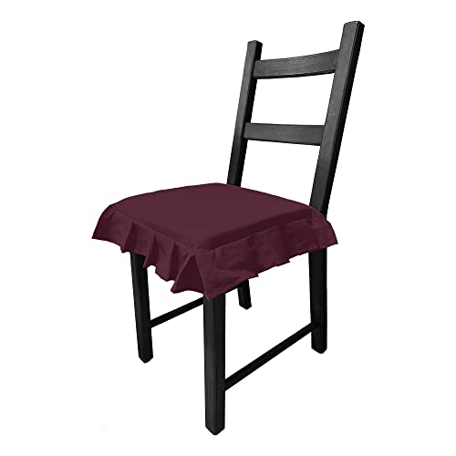 LARA MORADA - Set Da 4 Cuscini CopriSedie Cucina, Con Volant, Tinta Unita, SFODERABILI, Con Comodo Sistema Di Fissaggio Con Laccetti, Made In Italy, Con Morbida Imbottitura Bordeaux
