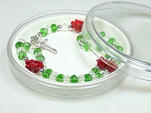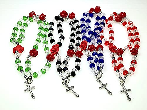 Larca Bracciale Rosario cristalli di vetro bicolore con rose in ceramica e croce in metallo (Verde)
