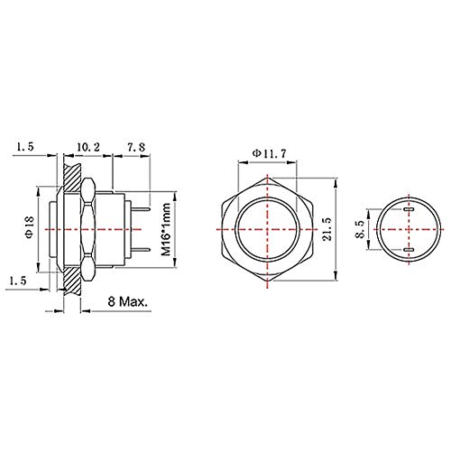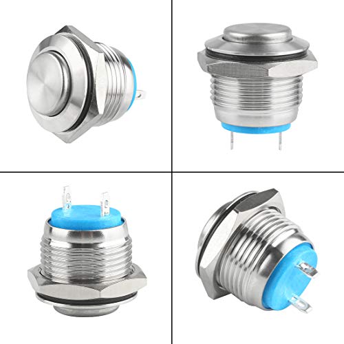 Larcele 16mm Impermeabile DIY Pulsante Rotondo Spingere Pulsante di Ritorno Automatico 1NO Guscio in Acciaio Inossidabile,5 Pezzi JSANKG-01 (Terminale J Pin, Testa Rotonda Alta)