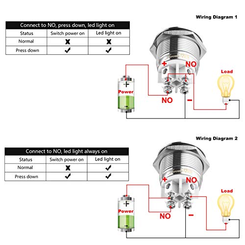 Larcele 16mm Impermeabile DIY Pulsante Rotondo Spingere Pulsante di Ritorno Automatico con 12V Verde Indicatore, Guscio in Acciaio Inossidabile JSANKG-27