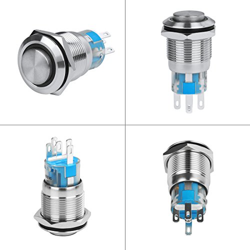 Larcele 19mm Bottoni Momentanea Premere il Pulsante con Blu Indicatore Luce, Alta Testa,Impermeabile,5 pezzi jsankg-08
