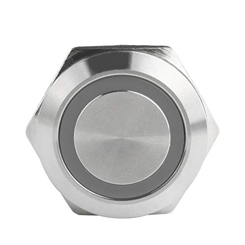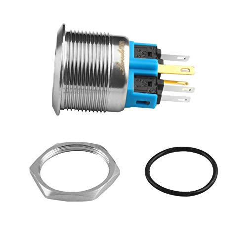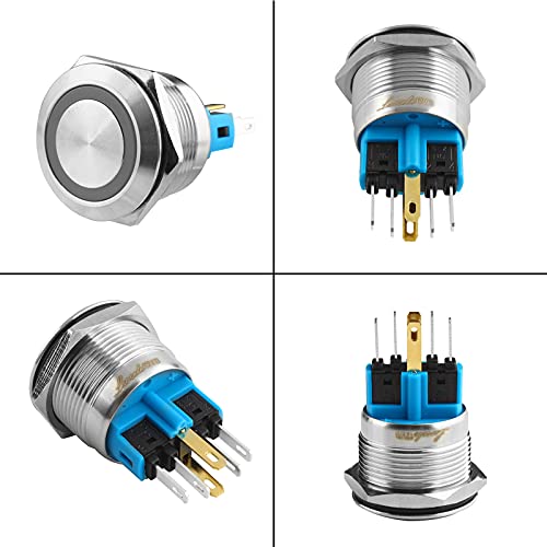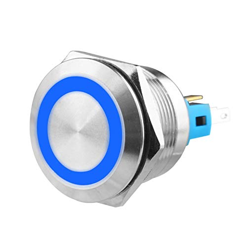 Larcele 22mm Interruttori a Pulsante con 12V Indicatore,DIY Impermeabile Autobloccante Interruttore Metallo, 1NO1NC Guscio in Acciaio Inossidabile,1 Pezzi JSANKG-23 (Autobloccante,Luz Blu)