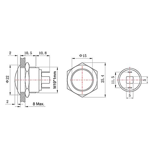 Larcele JSANKG-17 - Bottoni a pressione da 19 mm, impermeabili, 1NO in acciaio inox, 5 pezzi JSANKG-17 (terminale J pin, testa sferica)