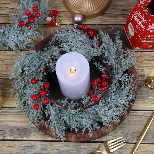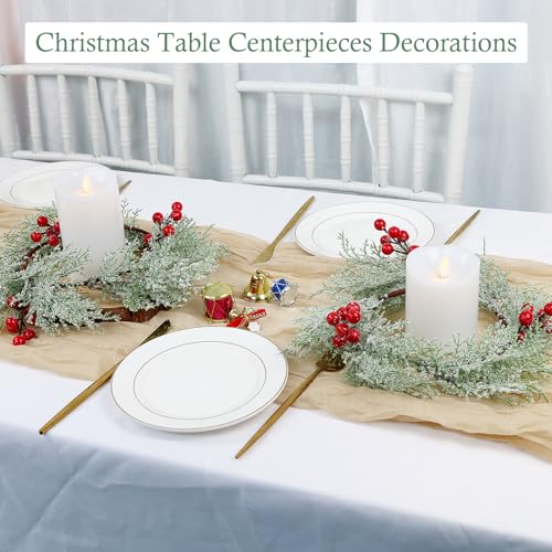 LARDUX 2 anelli natalizi per candele, ghirlande con bacche di pino artificiali, fiocco di neve, per tavolo da pranzo, candelieri, centrotavola, decorazione natalizia per la casa e le vacanze
