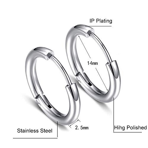Lareina.C 4 Paia Orecchini a Cerchio Piccoli da Uomo Donna, Huggie Orecchini Anelli 14mm, Orecchino Clip Pendenti Piercing Acciaio Inossidabile, Colori Argento Dorato e Nero Oro Rosa
