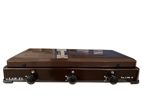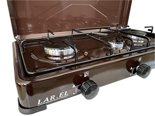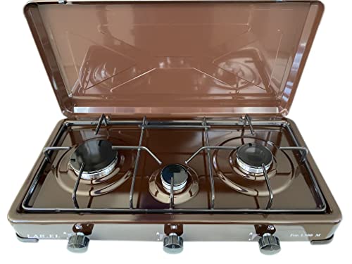 LAREL Fornello a Gas da Campeggio Marrone GPL 3 fuochi bruciatori cucinino appoggio
