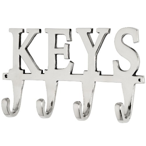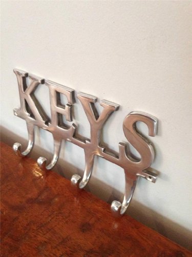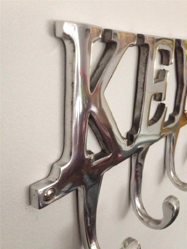 Large KEY Holder Rack 4 Hooks KEYS Metal Hook Hanger Chrome colour Upper Case Letters by Chattels