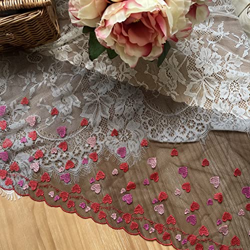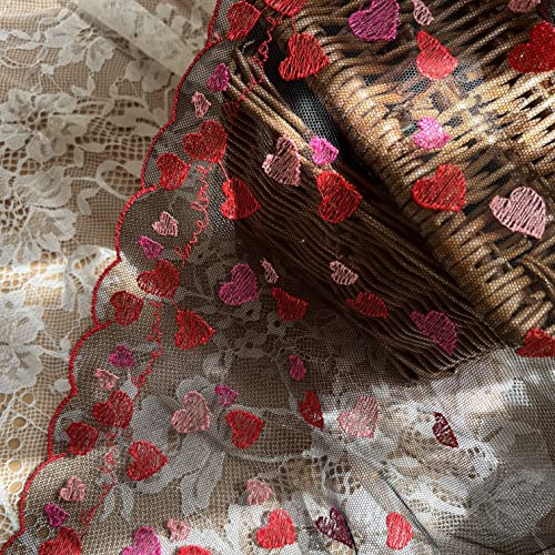 19,8 cm di larghezza, squisito tessuto a rete con ricamo floreale floreale, morbido velo, pizzo smerlato per cucito fai da te/decorazione di abiti da sposa, 3 metri (cuore rosso)
