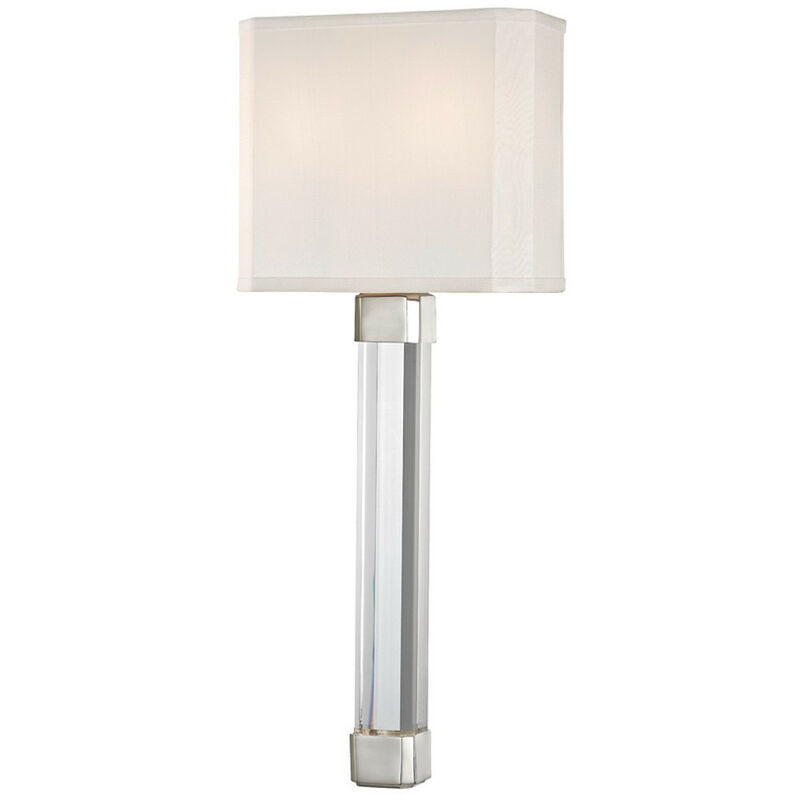 Larissa Applique a 2 luci in nichel lucido, seta | Finitura: nichel lucido | Materiale: acciaio | Grado di protezione IP: IP20 | Altezza: 54,6 cm | Larghezza: 22,9 cm | Sporgenza: 10,2 cm | Tipo di lampada: E14 | N. di lampade: 2 | Lampadina inclusa: no | Dimmerabile: Sì - Sono necessarie lampadine dimmerabili | Peso: 3,17 kg | Potenza (max): 40 W