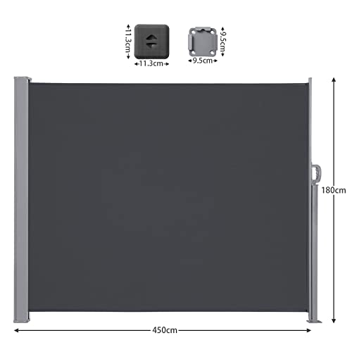 Stabile e durevole: Il palo del balcone della tenda da sole e la conchiglia sono fatti dal ferro di qualità, la superficie verniciata antiruggine, non facilmente essere deformata. Le dimensioni della tenda laterale sono180 x 450 cm, resistente e facile da trasportare.