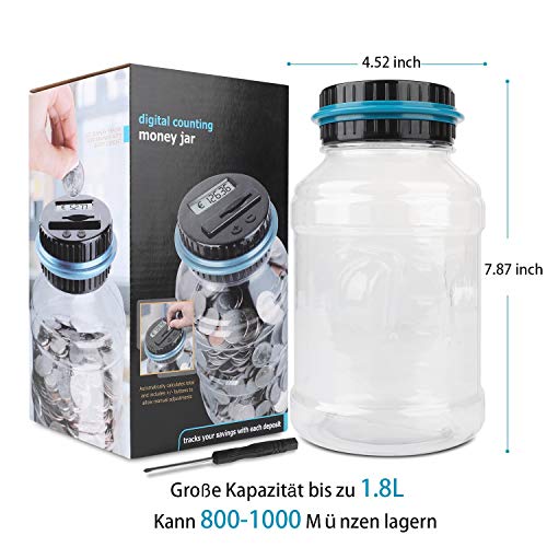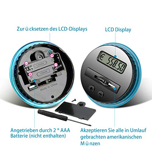 LarmTek Salvadanaio Contatore Salvadanaio con Display LCD, Contatore Automatico di Monete Salvadanaio in plastica di Grande capacità, Salvadanaio Digitale Bambini Amici.