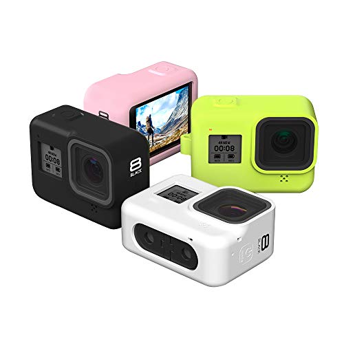 LARRITS Custodia Protettiva in Silicone + Cordino in Silicone + Vetro Proteggi Schermo e Lente per GoPro Hero 8 Nero