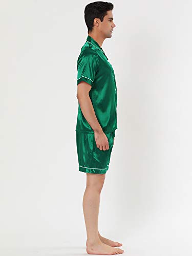 Lars Amadeus Indumenti da notte da uomo Top e pantaloni a manica corta Set pigiama in raso per indumenti da notte estivi verde S
