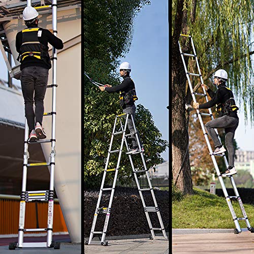 【Comodo da Trasportare】La scala telescopica è molto comoda da trasportare e utilizzare. Ti forniamo cinture di sicurezza per carichi pesanti per proteggere le scale pieghevoli, così non devi preoccuparti che le scale si allentino improvvisamente quando le raccogli. Hai solo bisogno di allentare la cintura di sicurezza e tirarla su per ottenere una scala robusta.