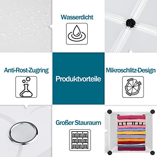 Ampio spazio di archiviazione: l'armadio fai da te contiene 6 ripiani modulari. Ogni cubetto misura 35 cm x 35 cm x 35 cm e offre molto spazio per più cose, semplice e leggera nella struttura. Ogni cubo può sostenere fino a 10 kg. Progettato con telaio in metallo rinforzato per mantenere la struttura solida e stabile. Impermeabile, facile da pulire.